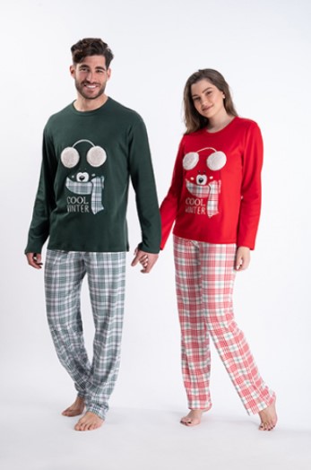100% cotton pajamas with “bear” print and fur details. Checkered pants in a straight line. Also available for men with code: 2421144 with checkered pants or code 2421116 with monochrome pants. 100% cotton. From the Greek company Relax.
