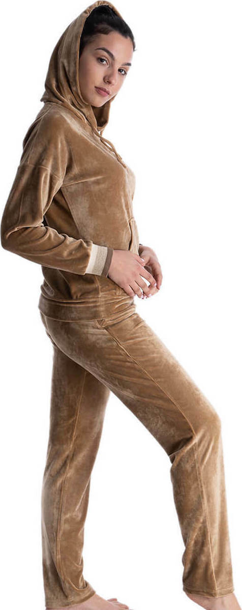 Rachel Χειμερινό Γυναικείο Σετ Πιτζάμας Βελουτέ Camel 12692